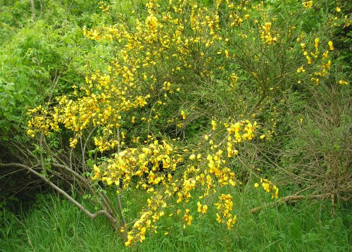 Our volunteers have spent several hundred hours over the past 2 years cutting back grass with mowers or selectively from overgrown tussocks with sheers and taking the grass away for composting. This has reduced the excessive nutrient nitrogen status of the soil which had risen due to pollution from the atmosphere and in rain over more than a decade. Lower soil fertility benefits wild flowers generally compared to grasses, especially legumes like clover that can fix nitrogen from the air via nodules on their roots.  The red clover has become much more prolific as a result and is looking really beautiful at the start of June. The closely related broom east of the path is also looking rather splendid now.