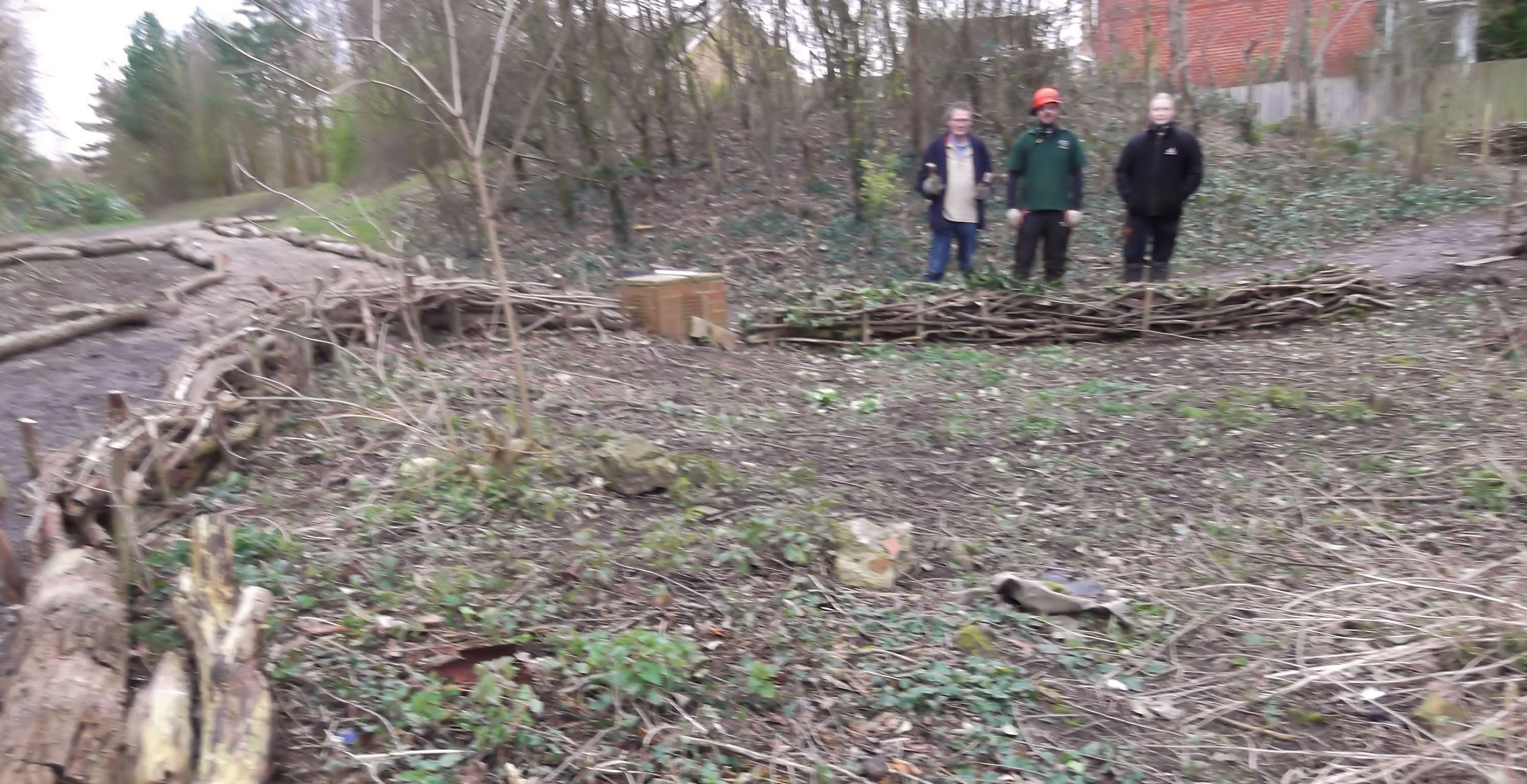 At an extra session on Monday 14th March Adam and Malcolm spent a few hours improving the access area to the rear path by adding gravel, pegging down log edges to stabilize them and planting an extra holly. It’s nice to see the grass starting to recover from the damage done over winter by bike wheels.