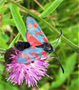 On July 13th 2017 there were literally dozens of butterfliles, moths and bees on the wild flower meadow. Mike Ridealgh caught a few on camera including a six-spot burnet, a ringlet, a gatekeeper and a shaded broad-bar (see below).