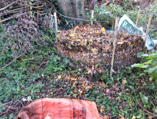 In the 3rd week of November we planted a few hundred more English bluebells on the site, after first weeding out a lot of ground elder to reduce competition. We also collected a lot of fallen leaves from the path and grass verges/banks and transferred them to our leaf-mould container.