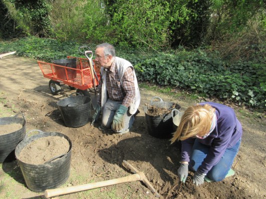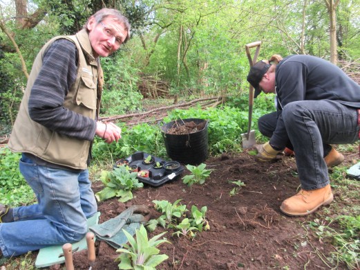 On April 11th Mike, Adam and Malcolm mowed the verges beside the main path and the grass path behind Hobmoor Terrace. Later they cleared a patch at the rear of the native English Bluebell area and planted some native foxgloves.