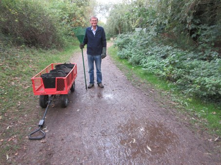 We’re getting well into Autumn now. A good time for planting Fritillary bulbs kindly donated by Tim Shepherd, but also important to start trimming the meadow before winter sets in. We also work on the paths between showers, weeding the main path and collecting up fallen leaves before they turn to a muddy deposit.