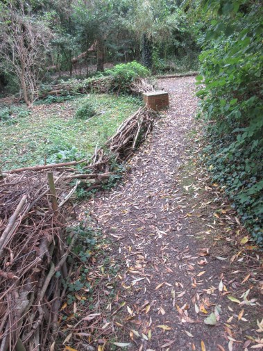 We’re getting well into Autumn now. A good time for planting Fritillary bulbs kindly donated by Tim Shepherd, but also important to start trimming the meadow before winter sets in. We also work on the paths between showers, weeding the main path and collecting up fallen leaves before they turn to a muddy deposit.