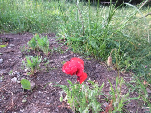 It has been near drought conditions in York for the past few weeks, but we have been managing to keep the poppy, cornflower and corn marigold patches watered. Malcolm was rewarded for his efforts by the first poppy flower on May 25th and the sight of several more buds.