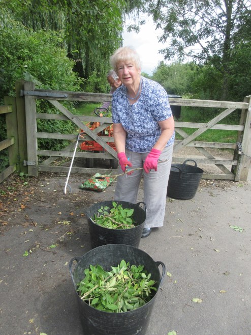 A helpful session with Mike Ridealgh on 5th August.  We managed some more trimming of Crack willow branches overhanging the path and cut these up for composting.  Mike and Malcolm then cut up the branches deposited in the compost area earlier to keep the surface flatter and safer.   Some illegally dumped garden waste deposited there during lock-down was posing a trip risk.