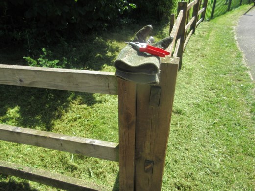 More trimming on Sunday 19th, this time between the gate and the playground.  Meanwhile Pam and Louise helped dispose of off-cuts and took some excellent photos after a litter-picking session.