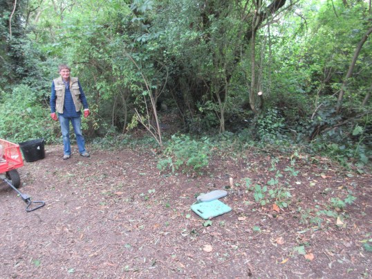 Useful session in spite of light rain on July 26th.  Malcolm did some tidying behind the information board at the north end of the site while Pam and Louise did litter picking and more tidying near the main gate.