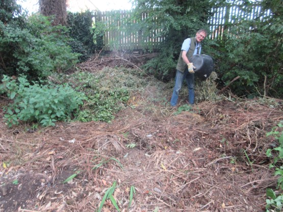 Trimming back ivy beside path for re-seeding verge.