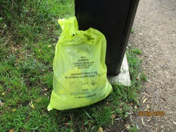 We were horrified on the way back to find a bag of illegally dumped medical waste between the playground and the MCT-managed woodland area.  We would be grateful for any information on its origins.