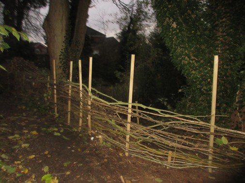 Still a bit more to do to the rear of the dead hedge, but it’s now already strong, safe, and a doubling as a useful habitat pile.