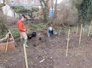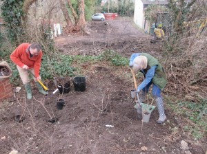 The photos taken on 24th show Paul and Lesley planting Guelder Rose with advice from the local robin. We have already planted several blackthorn, hawthorn and hazel in the exposed area.