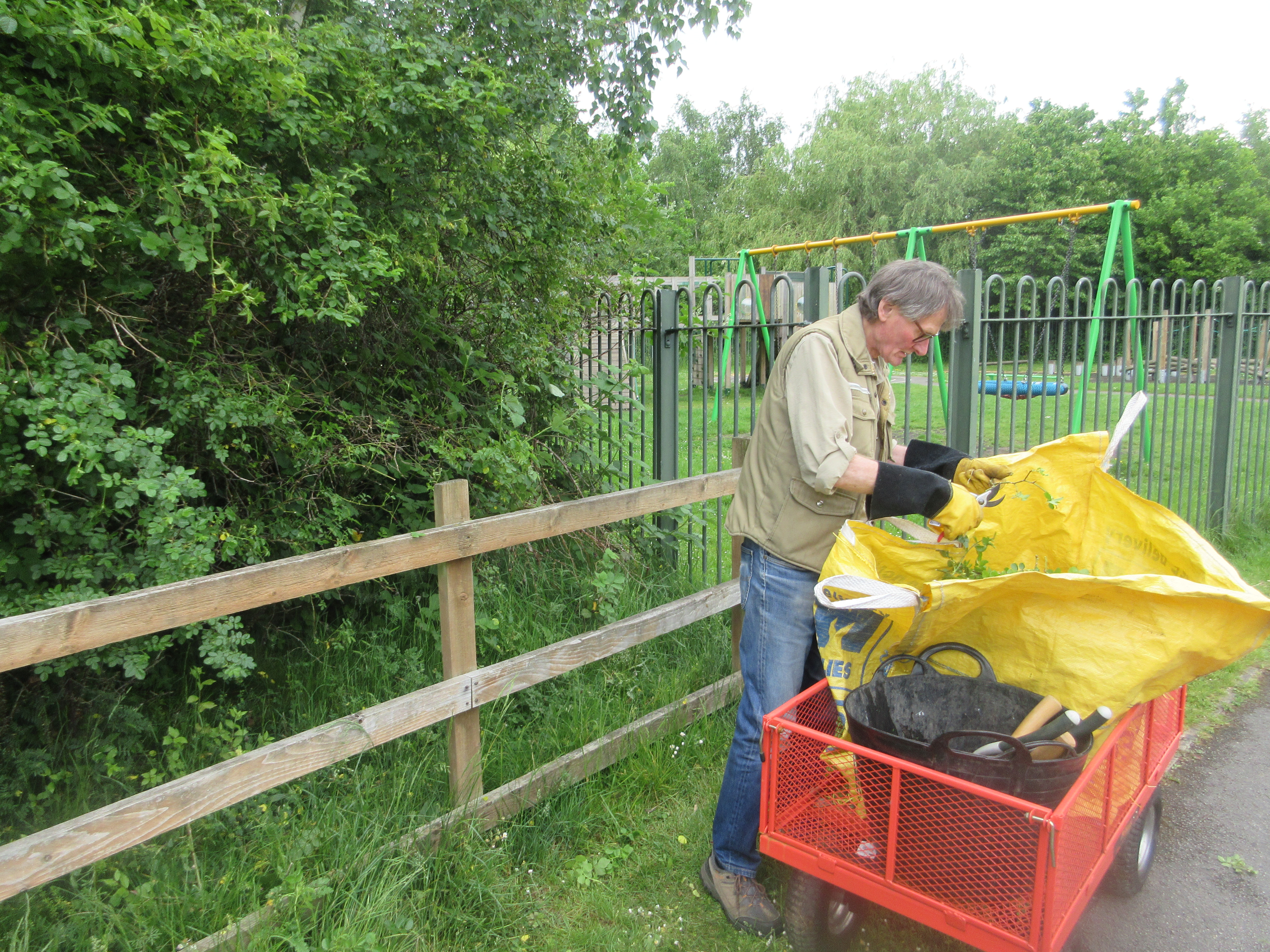 Mike and Malcolm did some trimming of the overgrown grass and rose between the gate and the playground on the morning of May 19. Malcolm went back in the evening and finished the job (well almost!).