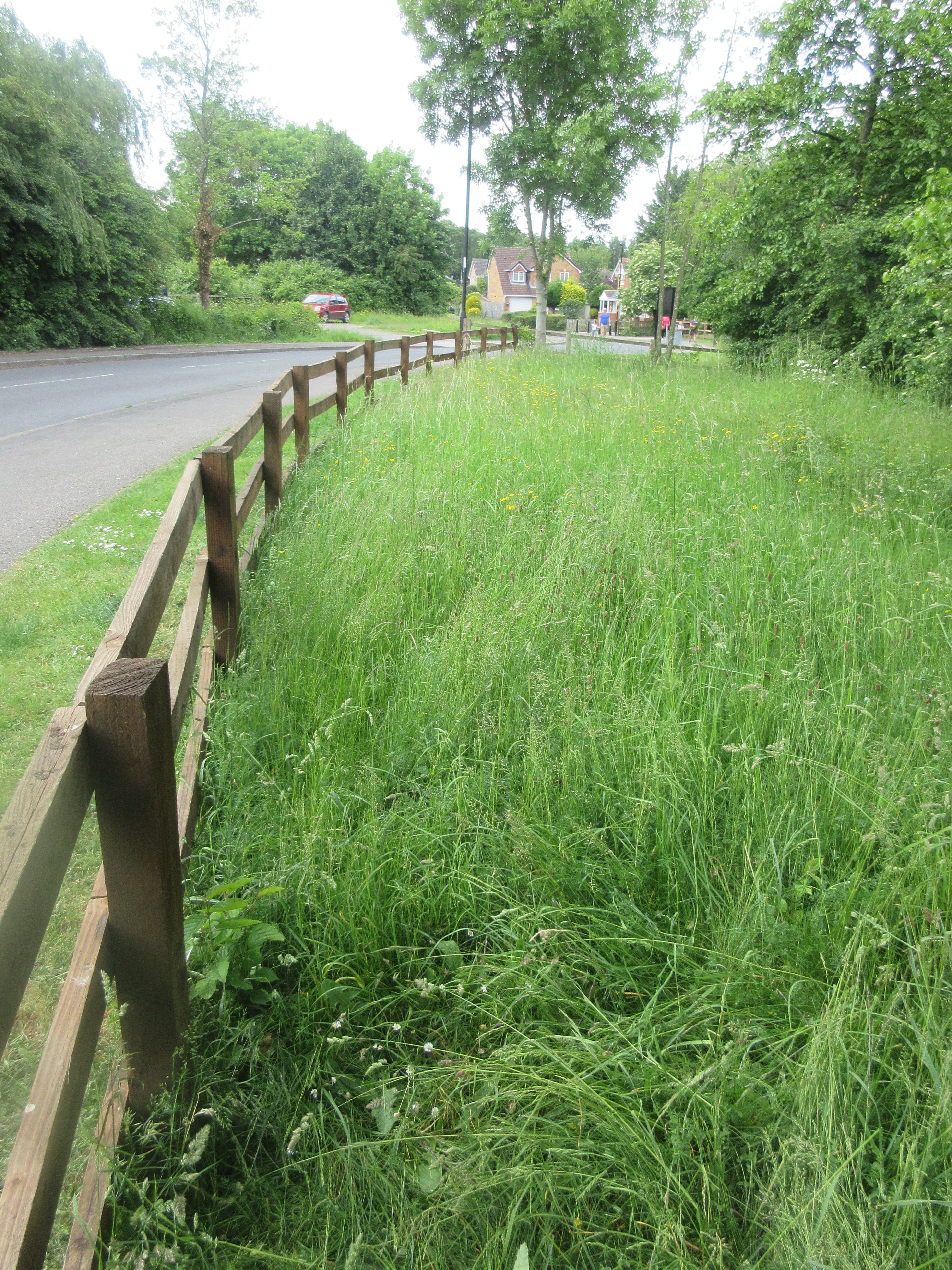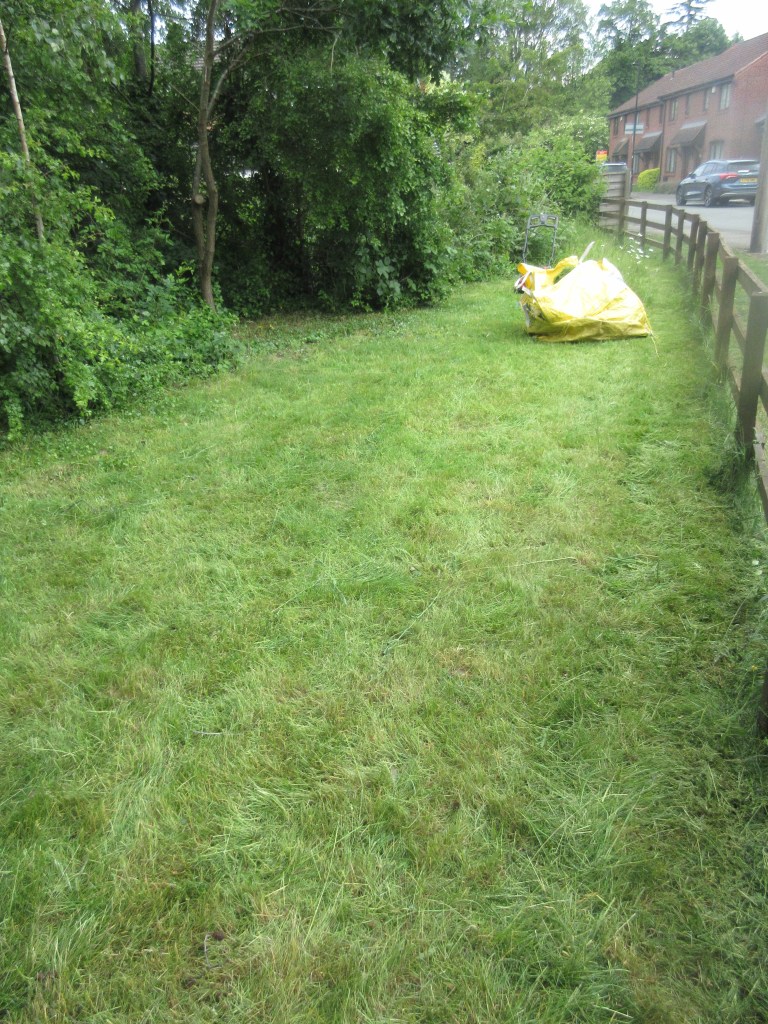 Mike and Malcolm managed to finish strimming the grass beside Nelsons Lane on June 28 and rake up the cut material for composting elsewhere on site.
