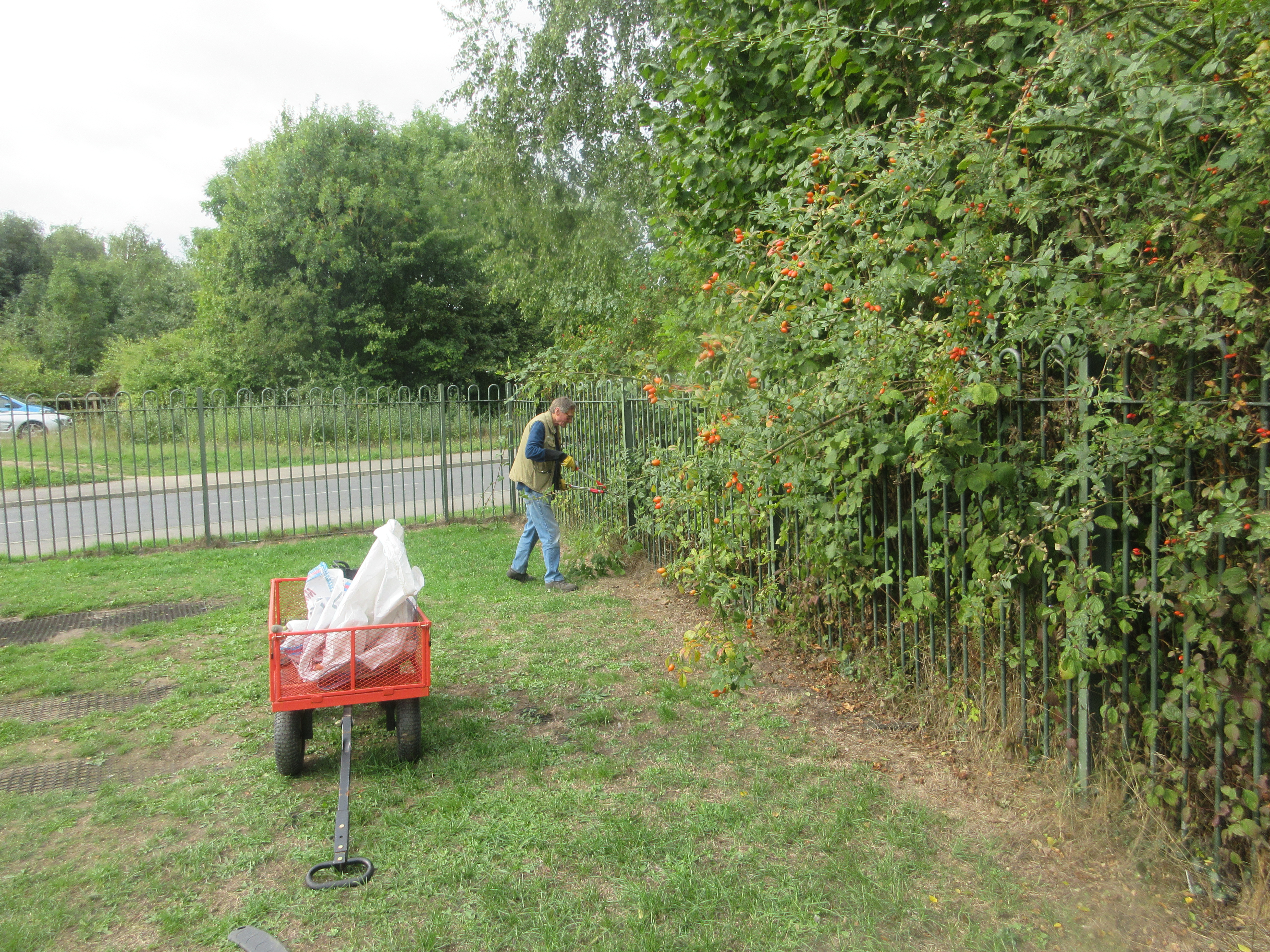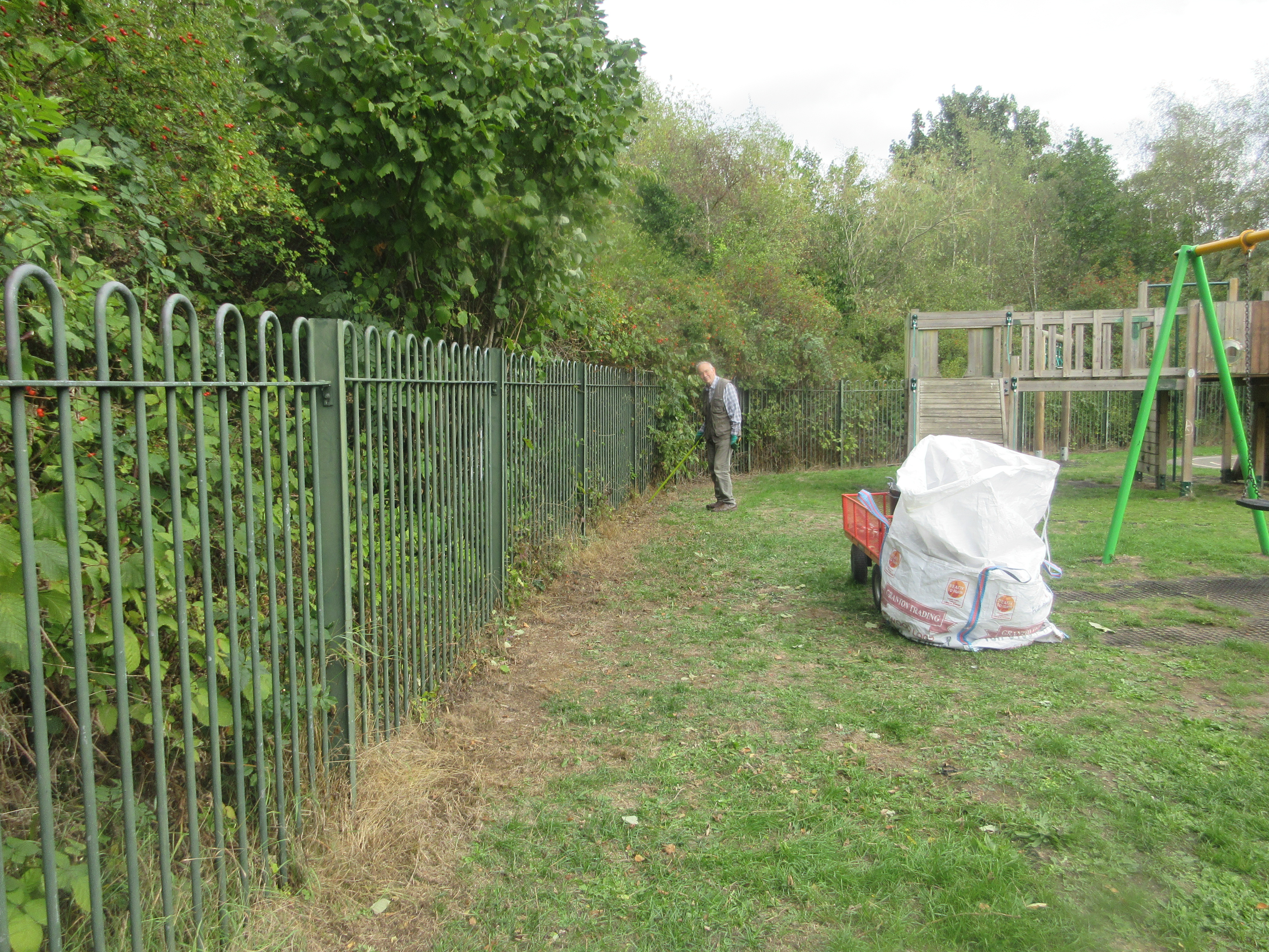 One of the jobs done by MCT at least twice a year is trimming the vegetation growing through the fence into the playground. Mike and Malcolm had a 2-hour session on this on September 22nd. It is important to remove thorny and prickly material.