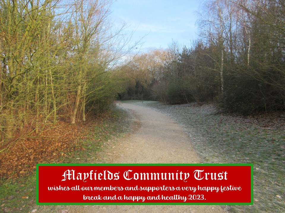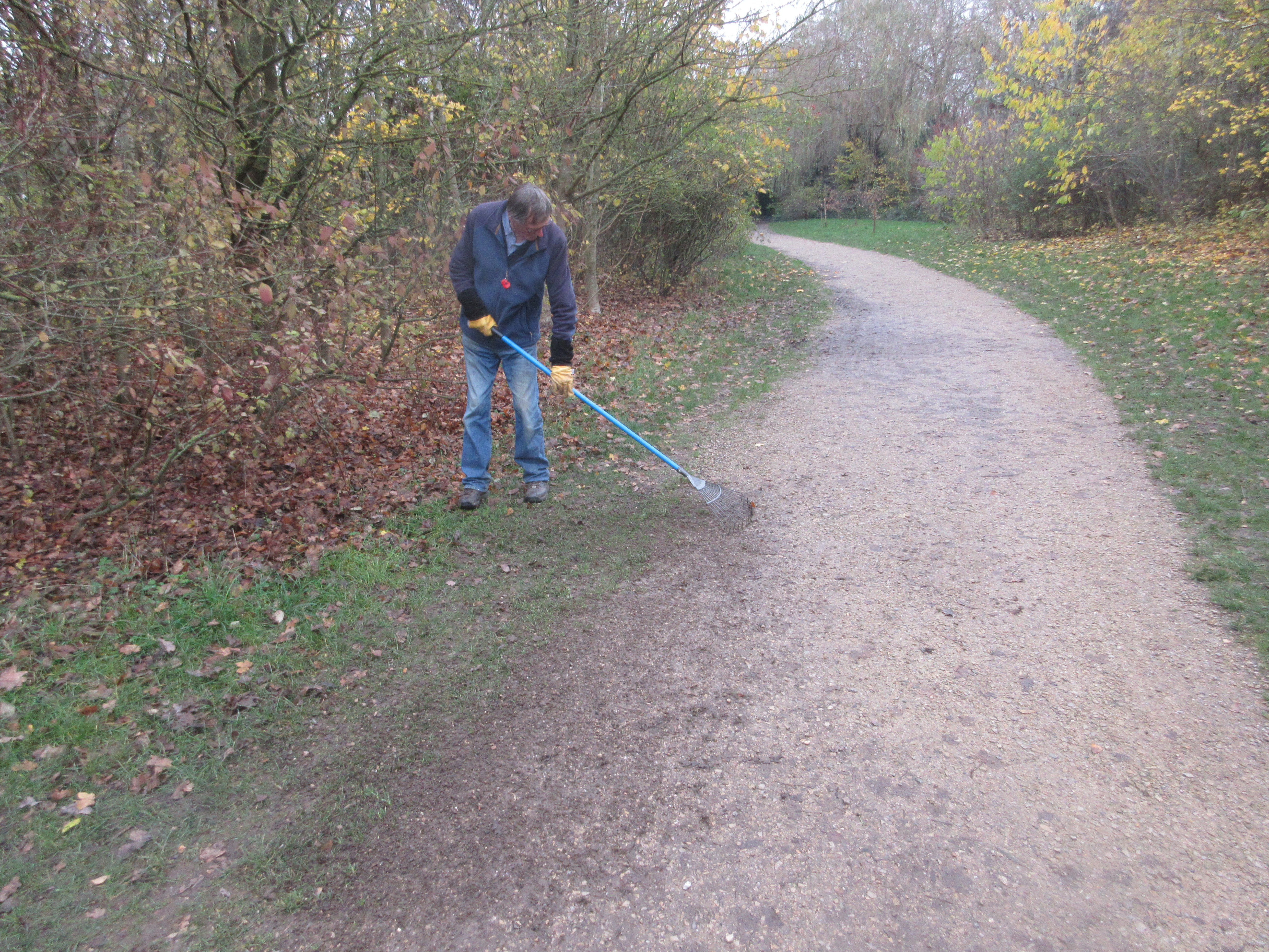 Cold but dry on December 1st 2022 on Mayfields. Good weather for Mike and Malcolm to work on restoring sections of the main path at the southern end to reduce grass encroachment and mud formation. Raking was followed by adding a fresh top dressing of pea gravel.