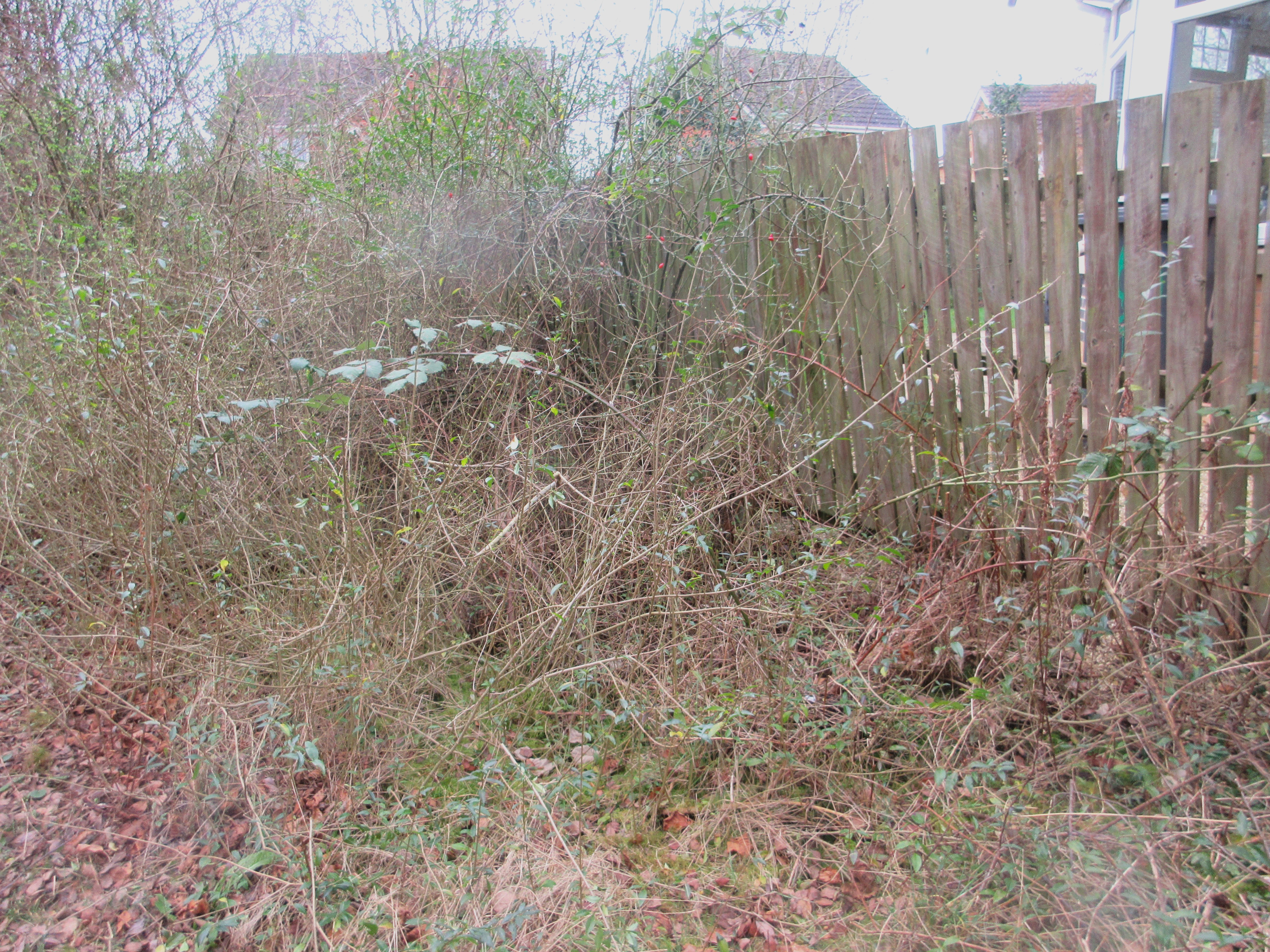 The overnight rain went quite early on Thursday morning, leaving pleasantly mild conditions for Lesley & Paul, Alan, and Louise & Malcolm to do more work behind the Goodwood Grove houses. We managed to cut back a willow growing through the fence panels at one point as well as disposing off-cut material at the composting area. Thanks to Louise for her excellent photographs.