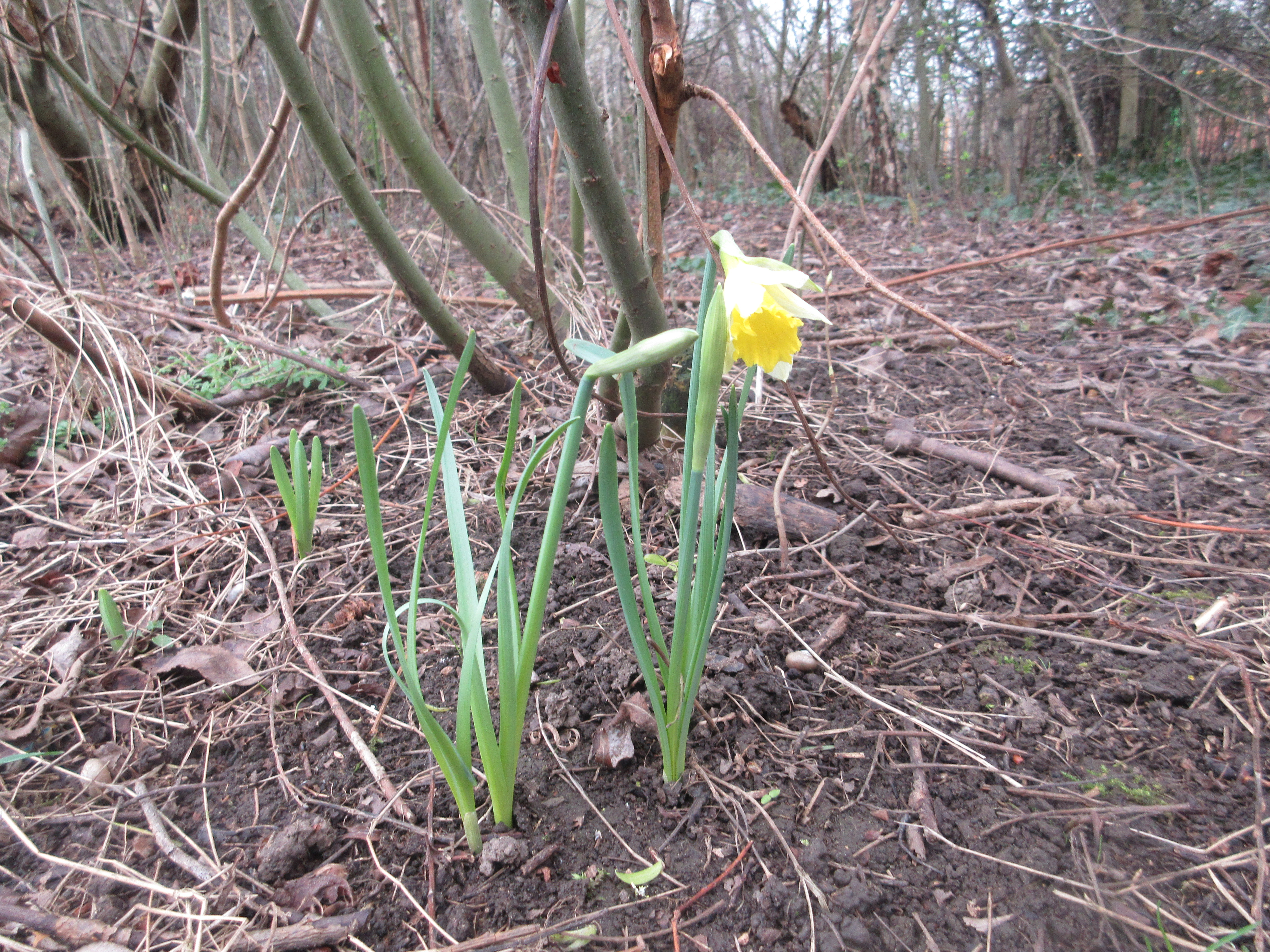 .We started to reduce the brambles growing towards (and sometimes through!) the fences of Goodwood Grove gardens on February 15th. There’s more to do and we’re also reducing the leaf cover there to give more light to the buried wildflowers.