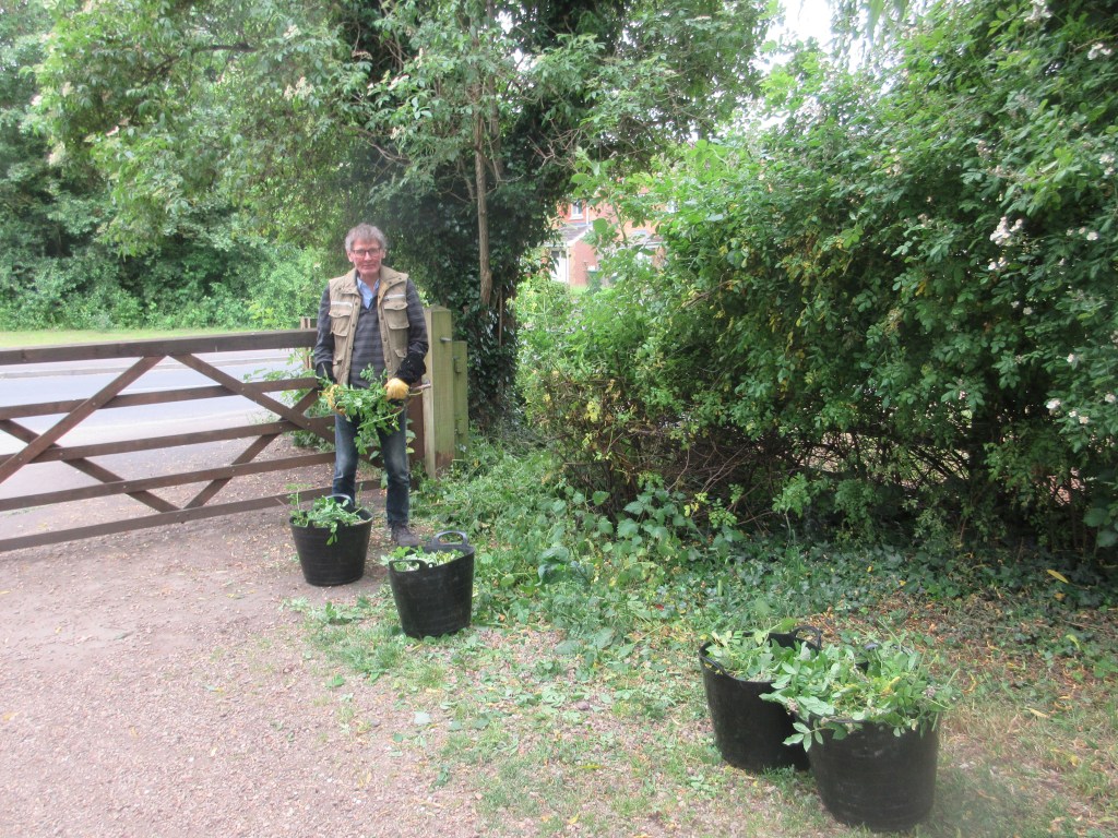 Great to have Mike Ridealgh back volunteering on Mayfields on June 1st. Mike and Malcolm had an excellent 4-hour session cutting back overgrown vegetation beside the main gate and around the noticeboard.. Offcuts were composted elsewhere on site.