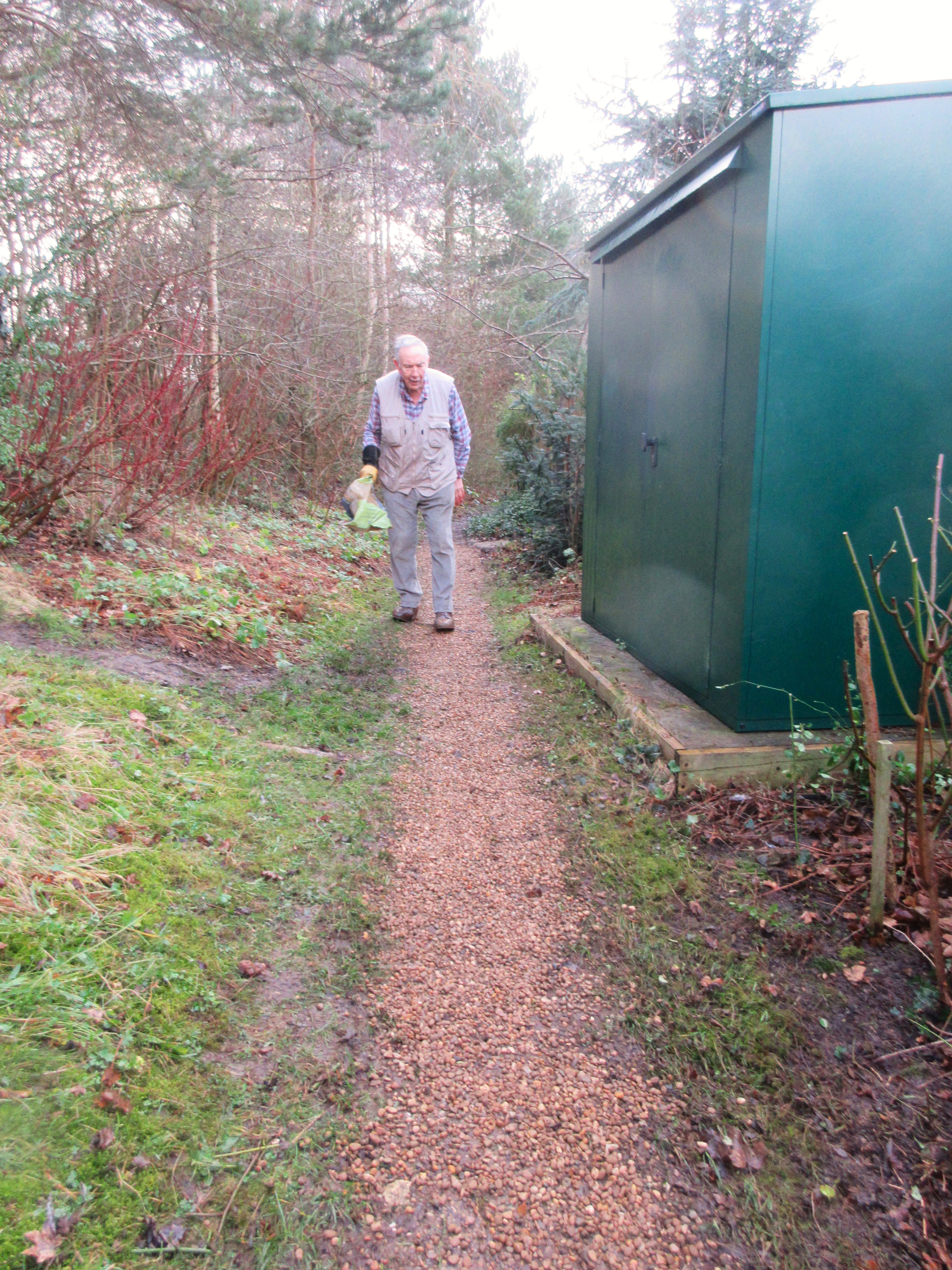 In anticipation of heavy rain and strong winds forecast for Sunday 21st of January Malcolm decided to spread another 4 bags of pea gravel over a muddy section of the back path. He hopes this will reduce trampling on the wild flowers growing on the path verges there.