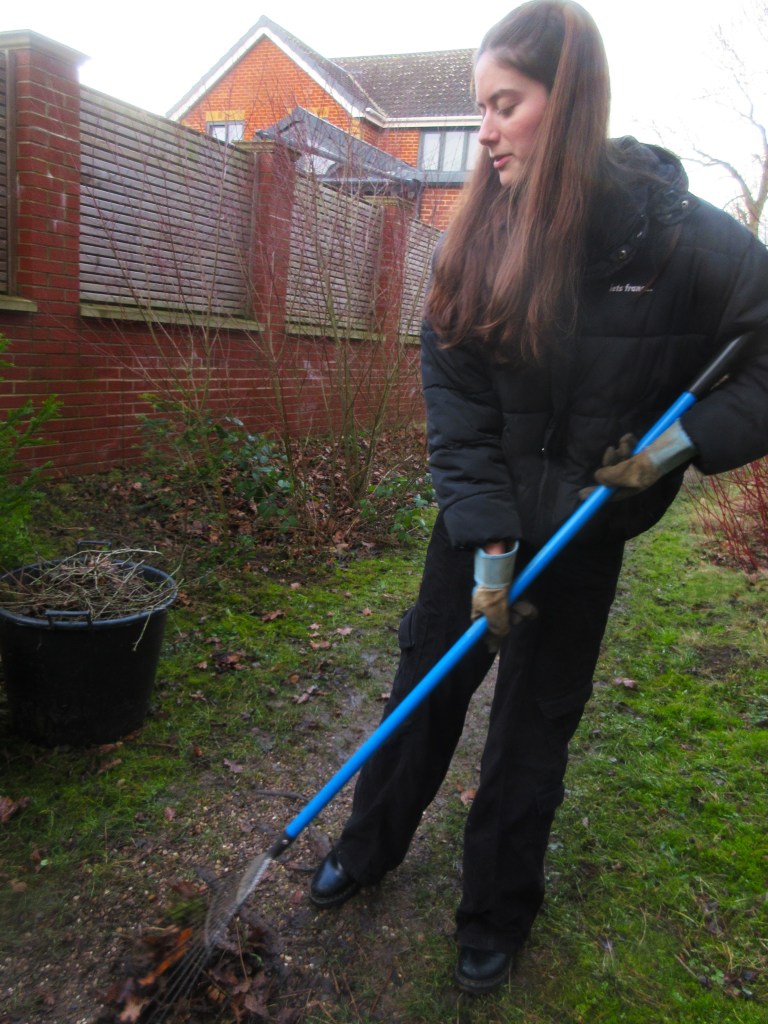 We started off in January raking up and composting leaf and twig accumulation from the festive break. Quite a lot to do still after the wet and windy weather of late. Initially we concentrated on this area at the N.W. corner of the site as we want to enhance the wild flower diversity even more here for our Co-op Community fund supported project.