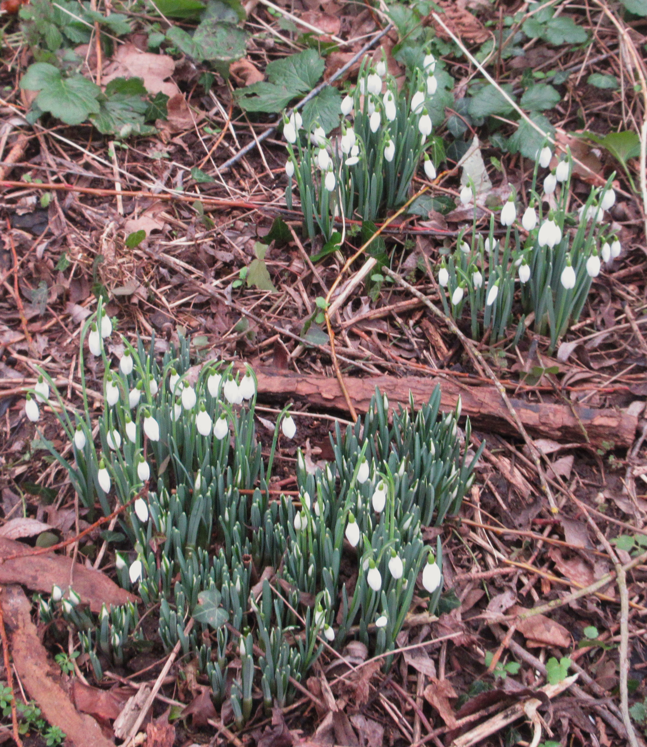 Clear signs of Spring on Mayfields on January 24 after the storms, but also lots of litter blown onto Mayfields and two smaller dead trees blown down.