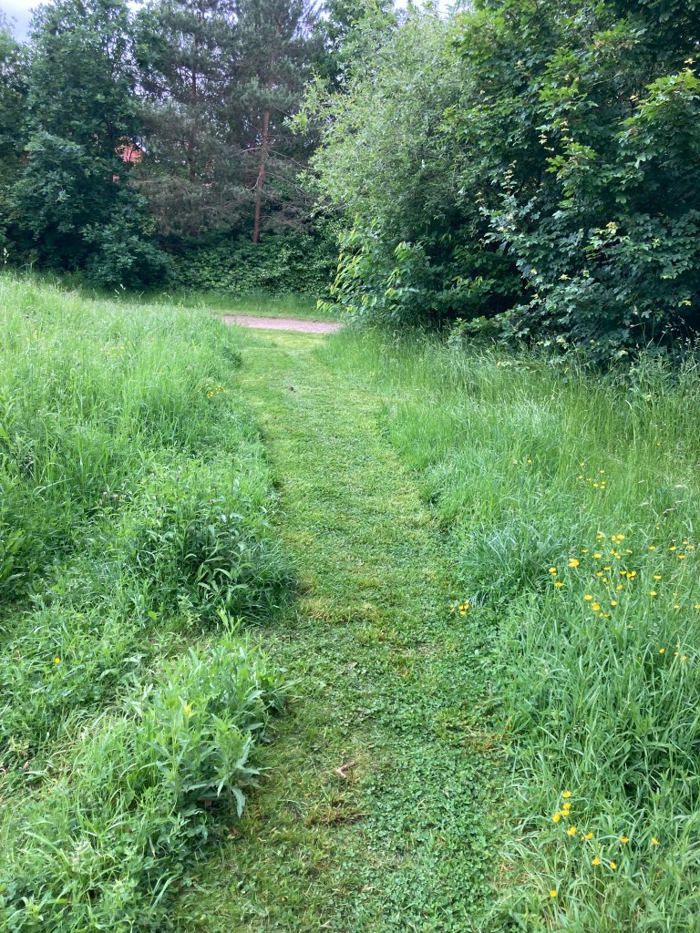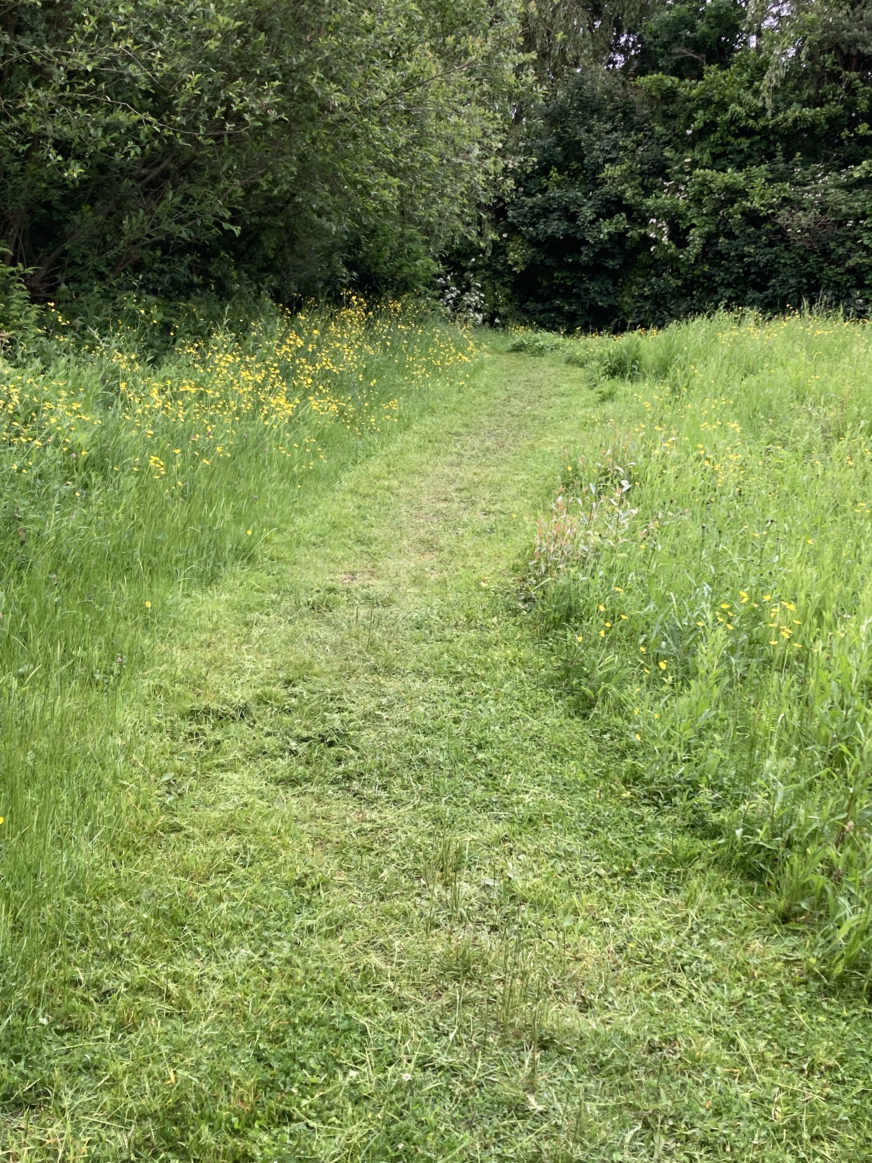 Great job by Lesley and Mike on Thursday with two mowers, making attractive grass paths around the meadow to make it easier to see blossoming wildflowers.