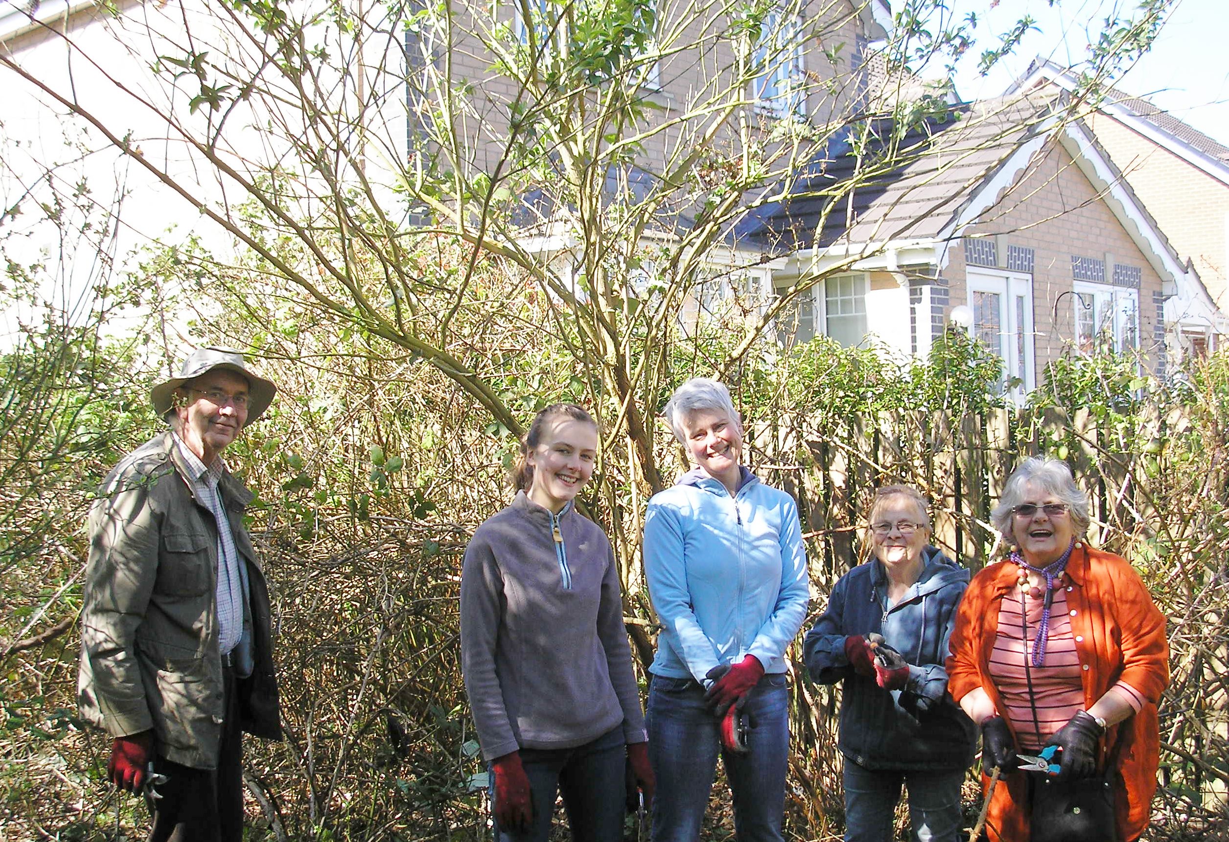 Photos below show the MCT Sunday volunteer activity worked well. Pam Brown caught Lesley, Paul, Louise and Malcolm on camera at a very early stage by marker posts behind the old wood pile She also helped with shifting lots of wood. The second photo was at 16.30, so it was a longish day but we wanted it to be safe and quite neat before we left. We’ll soon be planting in front of it (small shrubs and wild flowers).
