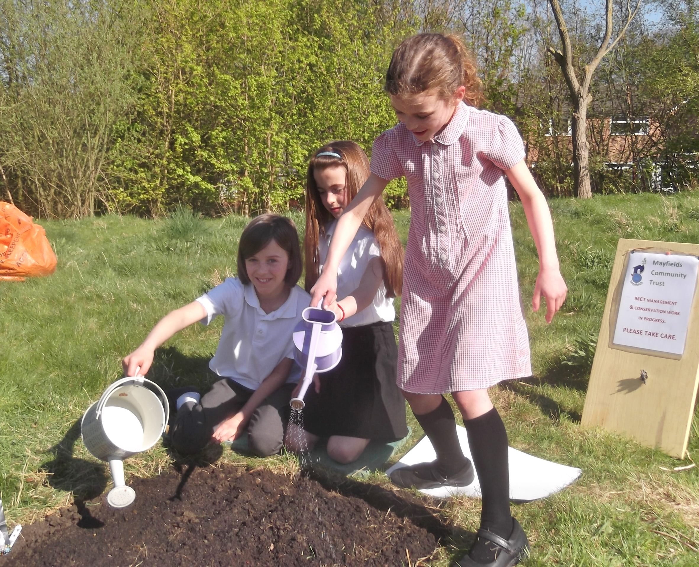 The first bench was installed by Adam, Dave, Mike and Malcolm on February 11th on a beautifully sunny day. We hope you’ll like it and some site users will find it useful at times. We’ve already had a few very nice comments from passers-by (even before the Postcrete was dry!). Thanks to Louise for the photo and carrying the necessary water. You can see more photos of the installation process on the Mayfields Community Trust Facebook page,