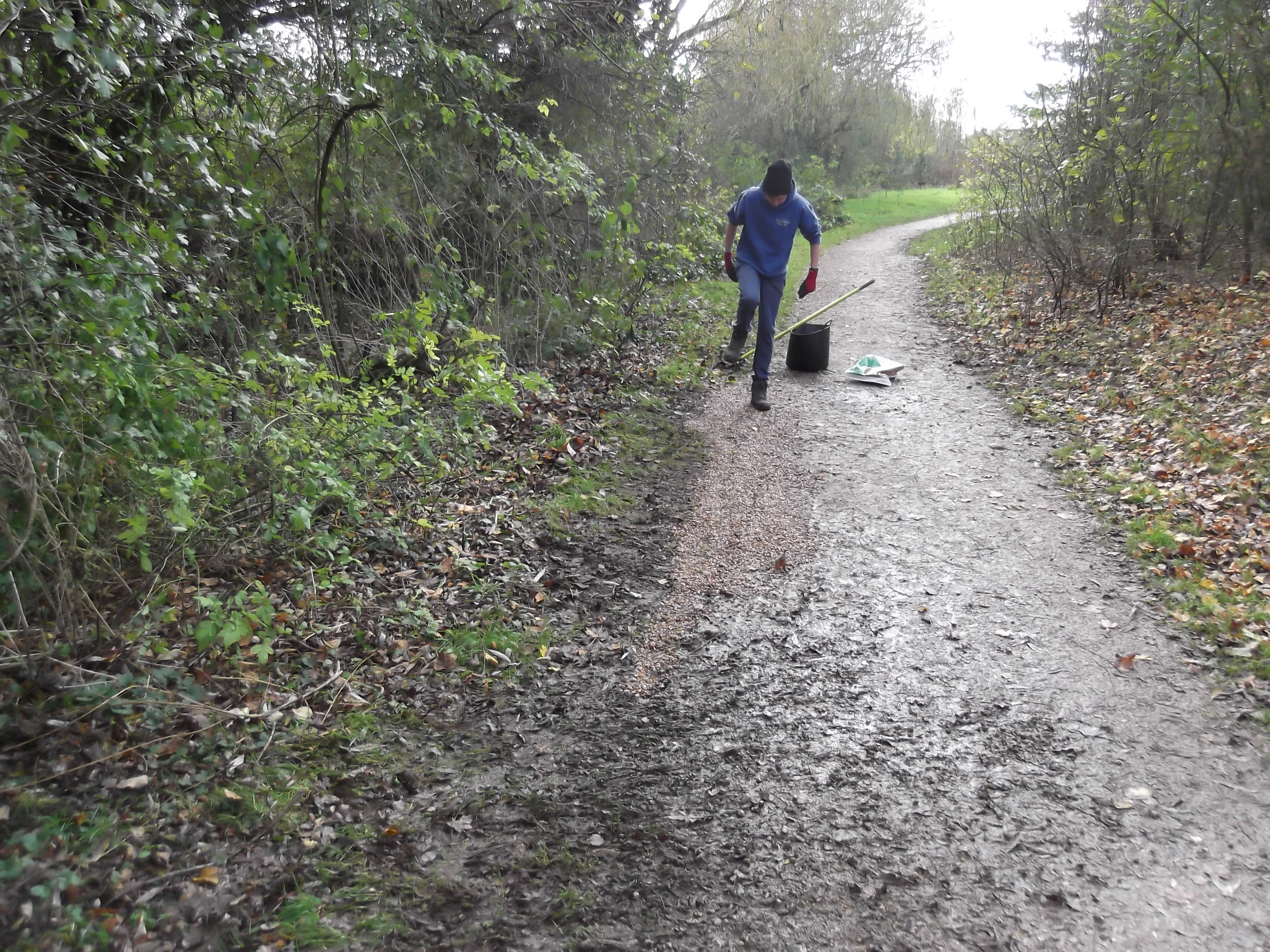 Cyclists have made a real mess of the grass near the MCT information board near Little Hob Moor by taking short cuts to the rear path. We have put in log barriers to protect the grass while we try to restore it and to guide them to a narrower path by creating an obvious junction as shown below. The problem’s been bad this year because of the prolonged wet periods. Applying 12 bags of gravel has made the area less slippery for the time being, so safer for walkers.