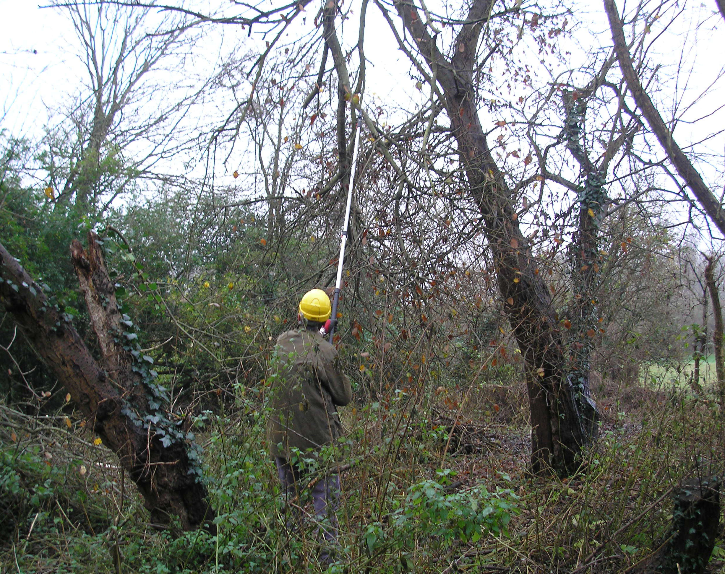 High wind on February 1st conveniently reduced the height of a dead tree on the edge of the site managed by MCT. The local tree warden, Ian Tomlinson, and the MCT field work co-ordinator had been watching the tree for several months, but it was left standing as an invertebrate habitat much loved by local woodpeckers. As the top fell in the night it was “caught” by an adjacent live willow, so it obligingly slid safely on to one of Ian’s habitat wood piles.